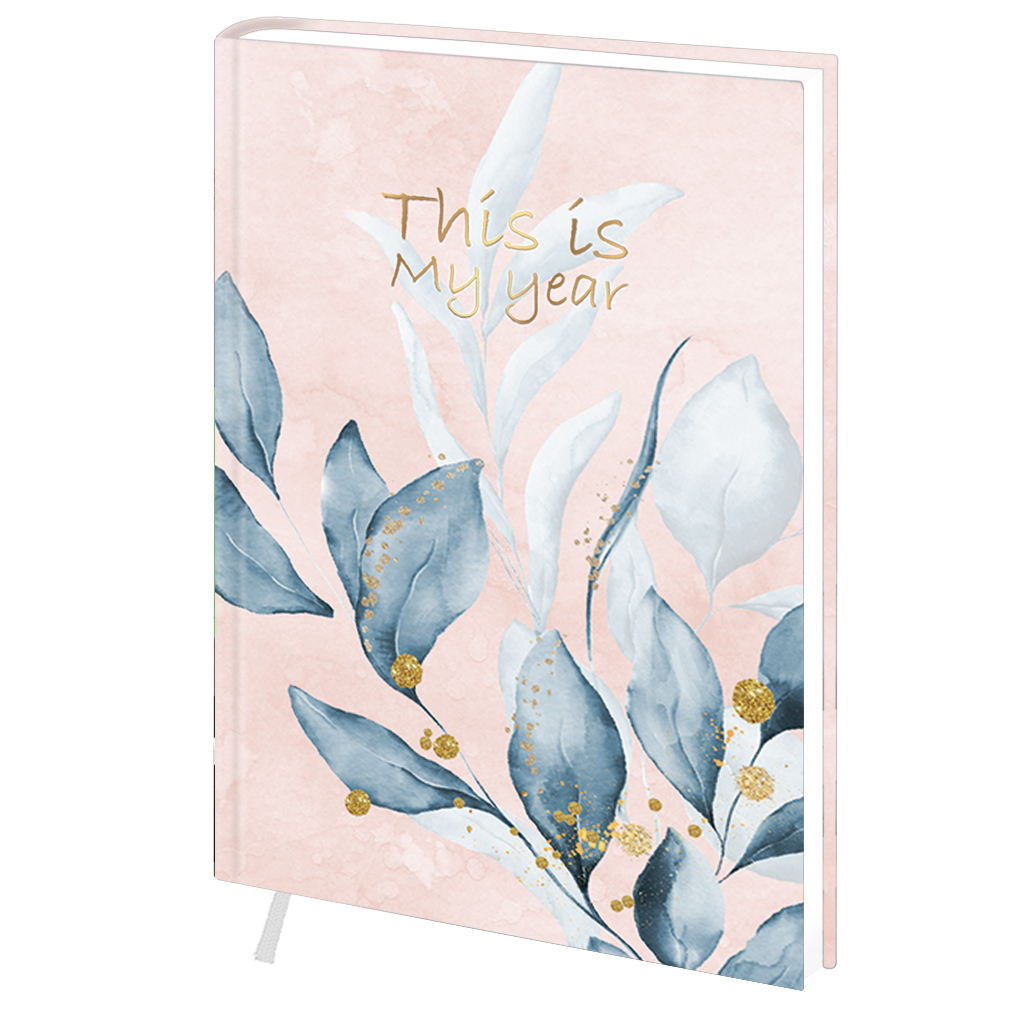 Діловий щоденник датований. Формат 145х202 мм. Кількість сторінок 320. Блок білий офсет 70г/м2. Колір капталу та лясе - білий. Мова укр., рос., англ. Форзац - без друку білий. Обкладинка палітурний картон, ламінація Soft touch.