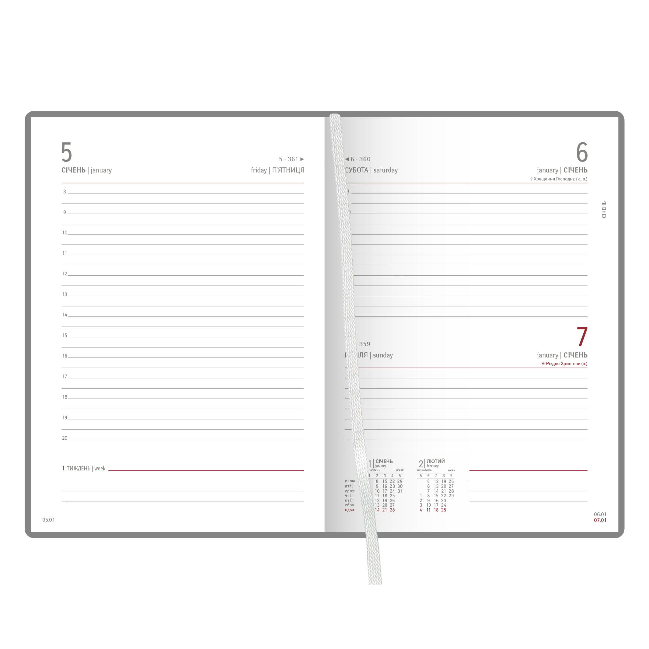Діловий щоденник датований. Формат 145х202 мм. Кількість сторінок 352. Блок білий офсет 70г/м2. Колір капталу та лясе - білий. Мова укр., англ. Форзац - кольорові мапи України, Європи. Матеріал обкладинки штучна шкіра.Інформаційний блок містить:-Валюти країн світу-Позначення країн та територій в Інтернеті-Правила догляду за одягом та знаки на етикетці-Розміри одягу та взуття-Одиниці для вимірювання фізичних величин-Офіційні правила тлумачення торгівельних термінів міжнародної торгової палати Інкотермс 2020-Автомобільні коди країни-Часові пояси-Відстані між європейськими містами та між обласними центрами України-Довідкові телефони-Телефонні коди міст України-Міжнародні телефонні коди-Міжнародні штрихові коди.