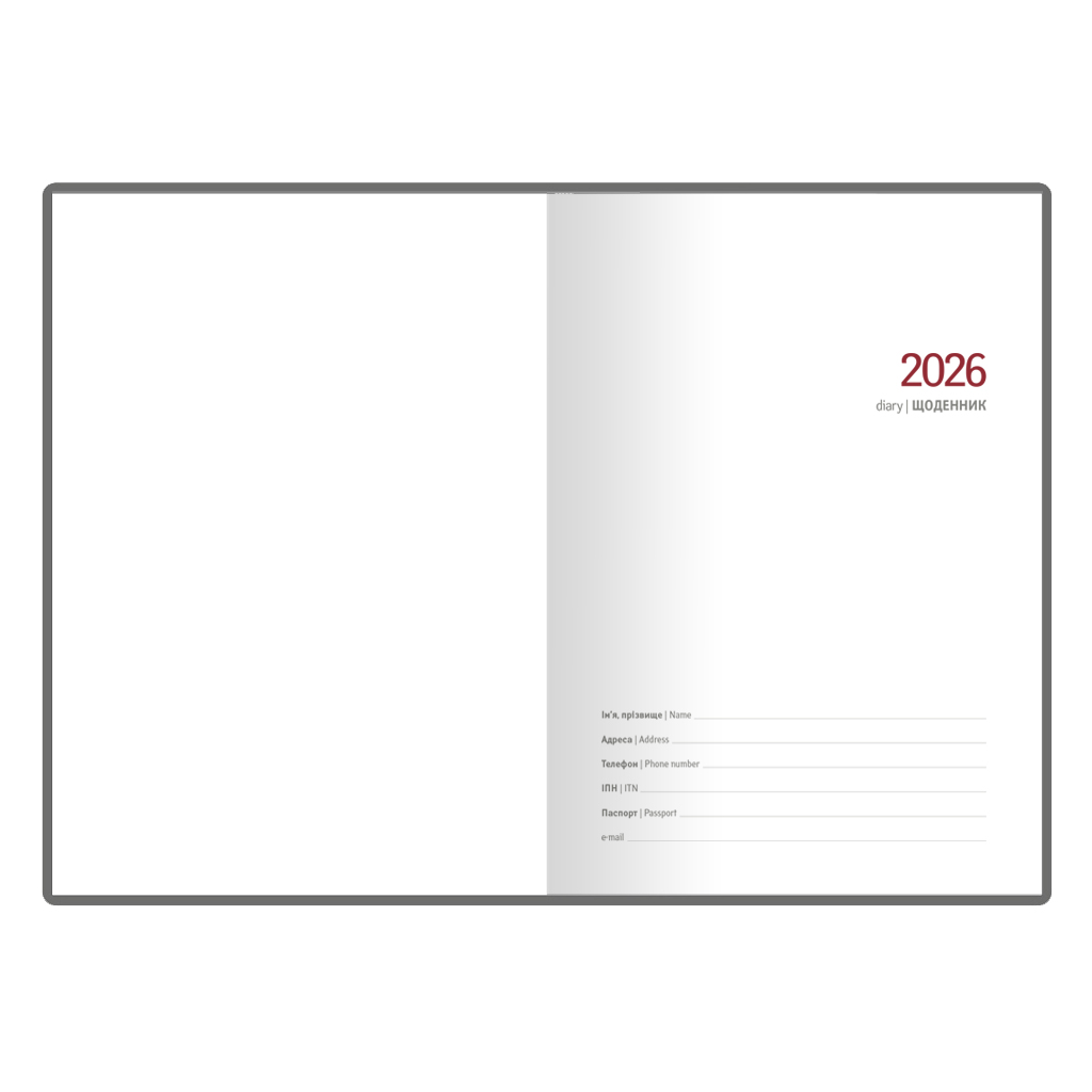 Діловий щоденник датований. Формат 145х202 мм. Кількість сторінок 352. Блок білий офсет 70г/м2. Колір капталу та лясе - білий. Мова укр., англ. Форзац - кольорові мапи України, Європи. Обкладинка: покривка штучна шкіра, сторонки картон палітурний з поролоном.Інформаційний блок містить:-Валюти країн світу-Позначення країн та територій в Інтернеті-Правила догляду за одягом та знаки на етикетці-Розміри одягу та взуття-Одиниці для вимірювання фізичних величин-Офіційні правила тлумачення торгівельних термінів міжнародної торгової палати Інкотермс 2020-Автомобільні коди країни-Часові пояси-Відстані між європейськими містами та між обласними центрами України-Міжнародні штрихові коди.