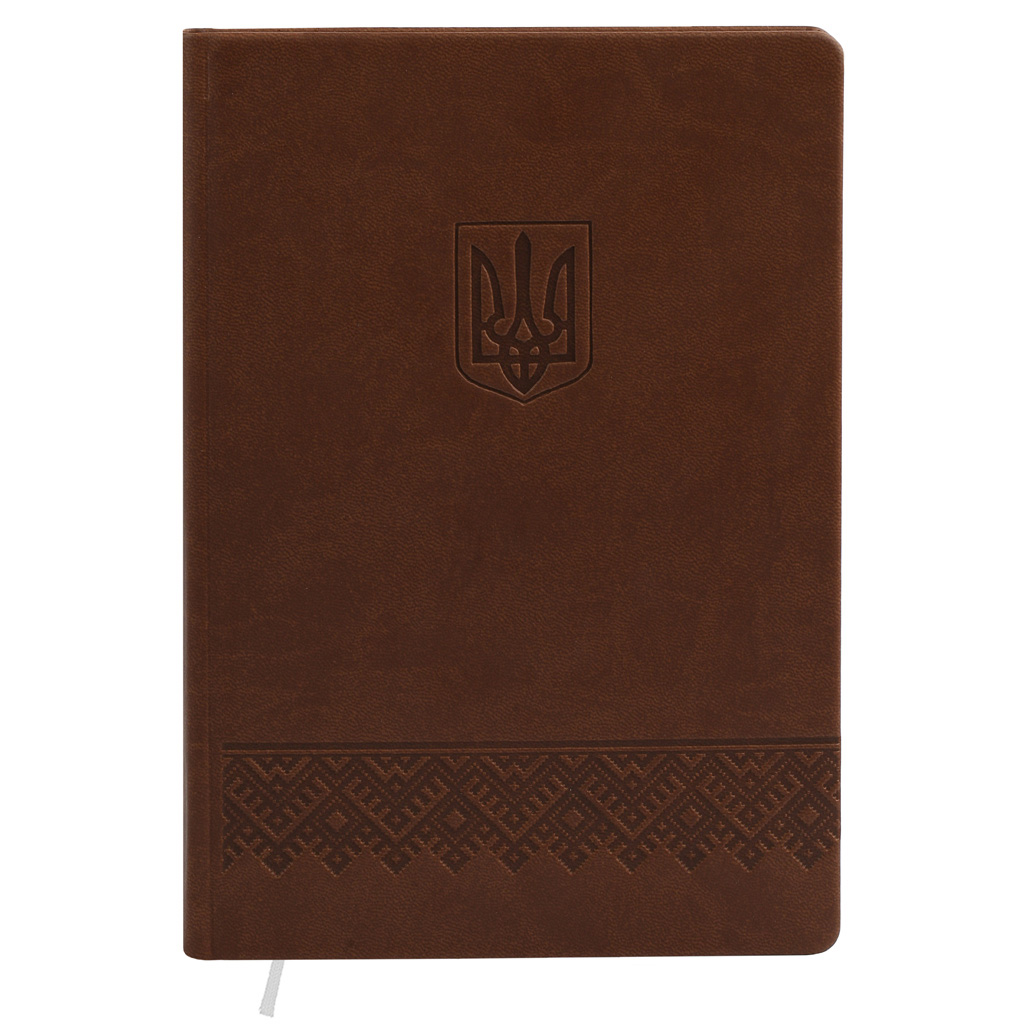 Діловий щоденник недатований. Формат 145х202 мм. Кількість сторінок 256. Блок білий офсет 70г/м2, клітинка. Колір капталу та лясе - білий. Мова укр., англ. Форзац - без друку білий. Обкладинка штучна шкіра.