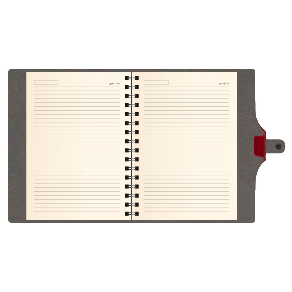 Опис Щоденник недатований А5 на пружині, в лінію, Nebraska на кнопці червоно-сірий