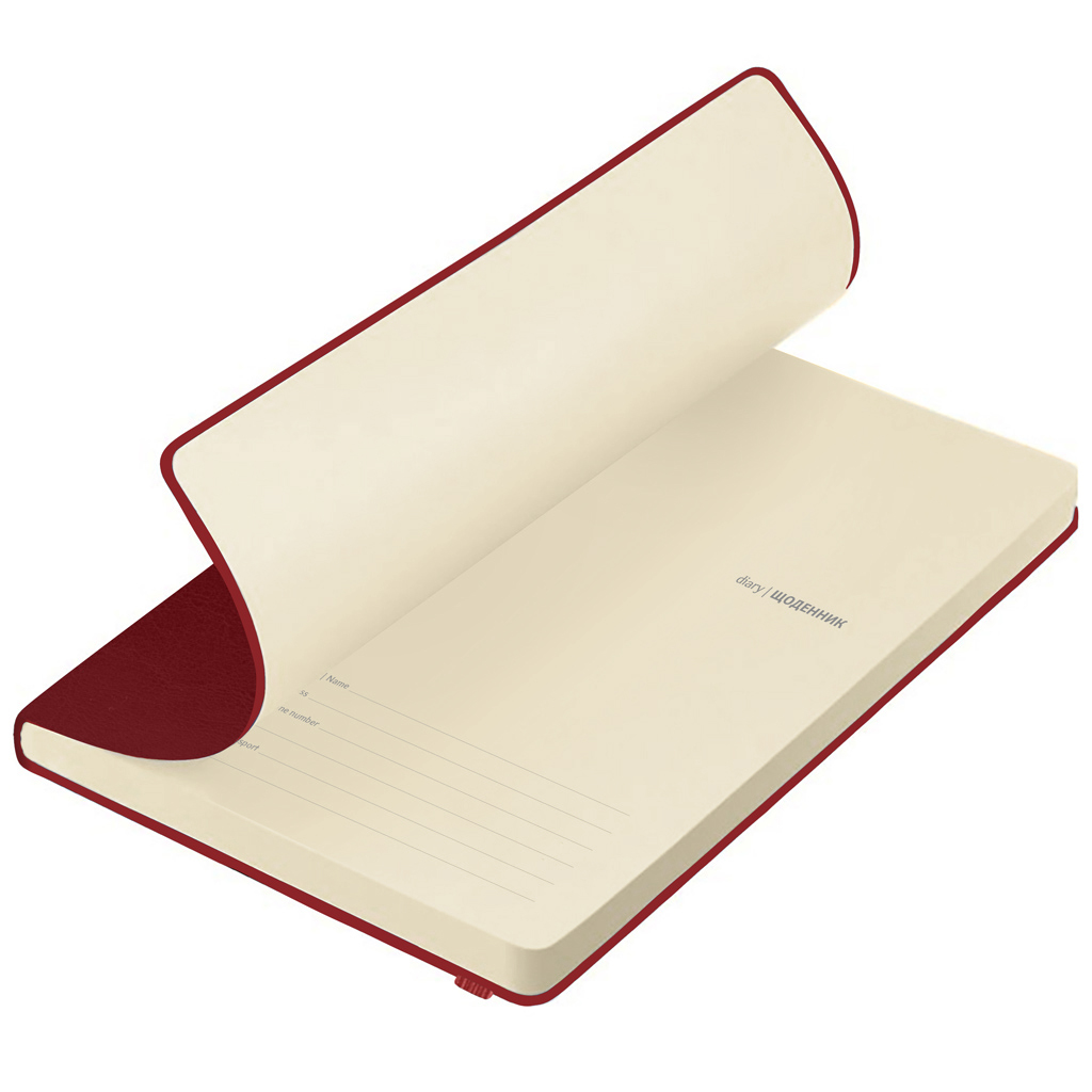 Опис Щоденник недатований А5 в лінію Nebraska на гумці бордовий