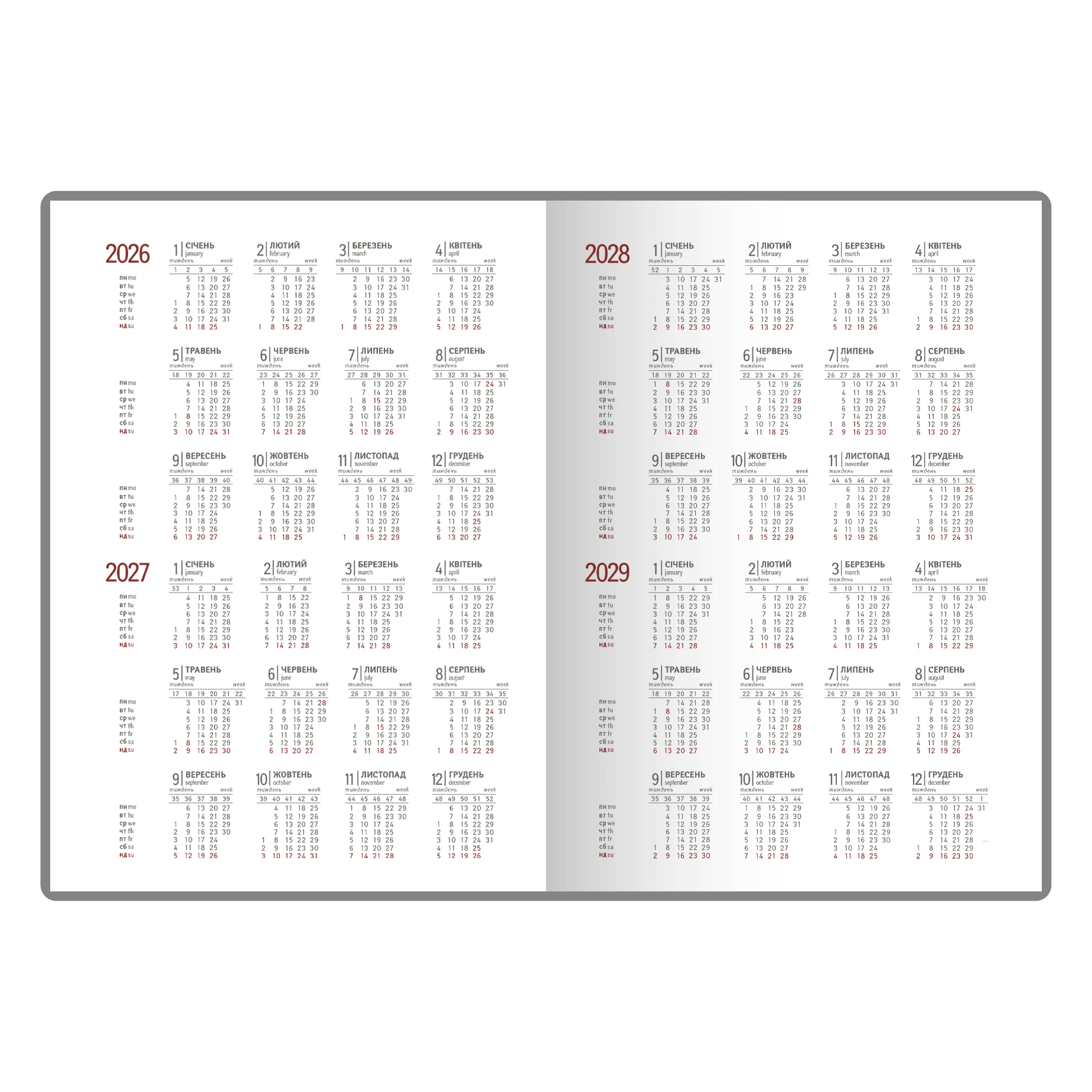 Діловий щоденник недатований. Формат 145х202 мм. Кількість сторінок 352. Блок білий офсет 70г/м2. Колір капталу та лясе - білий. Мова укр., англ. Форзац - кольорові мапи України, Європи. Обкладинка: покривка штучна шкіра, сторонки картон палітурний з поролоном.Інформаційний блок містить:-Валюти країн світу-Позначення країн та територій в Інтернеті-Правила догляду за одягом та знаки на етикетці-Розміри одягу та взуття-Одиниці для вимірювання фізичних величин-Офіційні правила тлумачення торгівельних термінів міжнародної торгової палати Інкотермс 2020-Автомобільні коди країни-Часові пояси-Відстані між європейськими містами та між обласними центрами України-Довідкові телефони-Телефонні коди міст України-Міжнародні телефонні коди-Міжнародні штрихові коди.