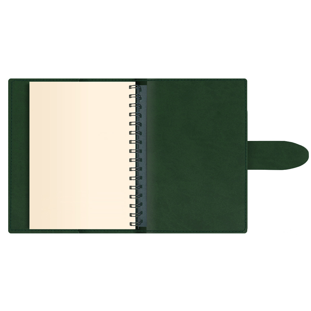 Опис Щоденник недатований А5 на пружині, в лінію, Silhouette з хлястиком зелений