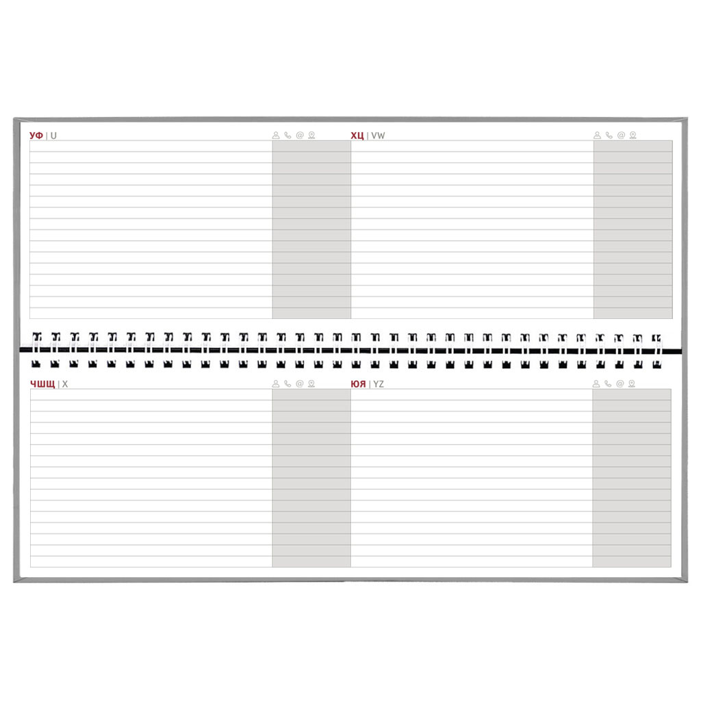 Тижневик недатований. Формат 297х104 мм. Кількість сторінок 116. Блок білий офсет 70г/м2. Мова укр., англ. Обкладинка: покривка баладек, сторонки верхня картон палітурний з поролоном, нижня картон палітурний.