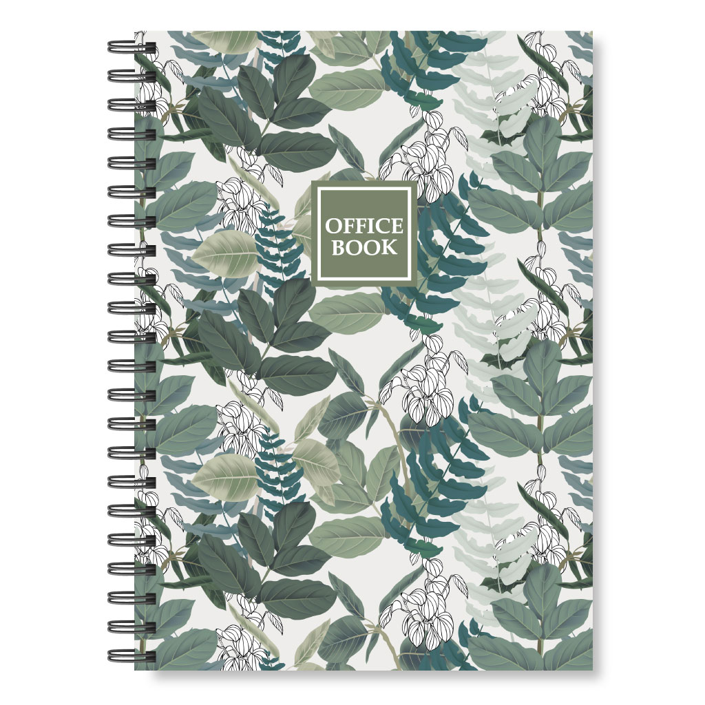 Опис Блокнот A4, 100 арк., клітинка, обкладинка твердий картон, пружина, Серія "Листя зелене"