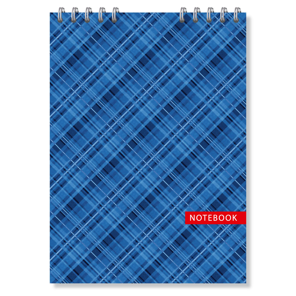 Опис Блокнот A5, 48 арк., клітинка, обкладинка картон, пружина, Серія "Шотландка синя 2"
