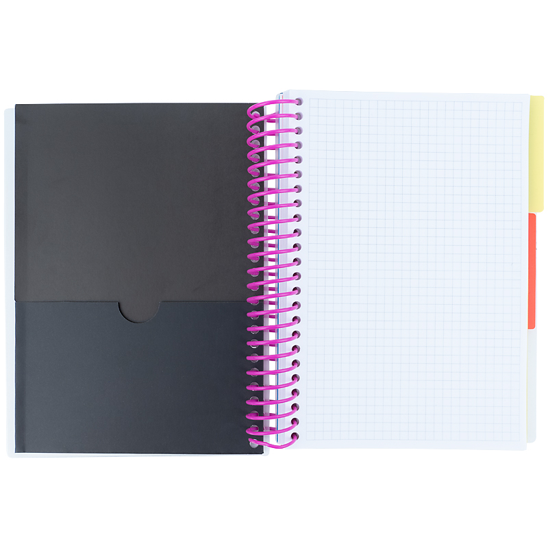 Опис Блокнот з розділювачами, А5, 120 аркушів, клітинка, спіраль, фіолетовий