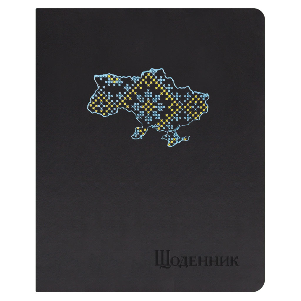 Щоденник шкільний А5 (160х198), 42 акуші. Обкладинка: покривка штучна шкіра, сторонки картон картон хром-ерзац. Блок офсетний папір 80г/м2. Структура внутрішнього блоку: -загальні відомості про учня, -відомості про вчителів, -розклад уроків по семестрах на рік. -основній блок - розклад на тиждень на розвороті (8 уроків, 6 днів тижня), -табель успішності учня.