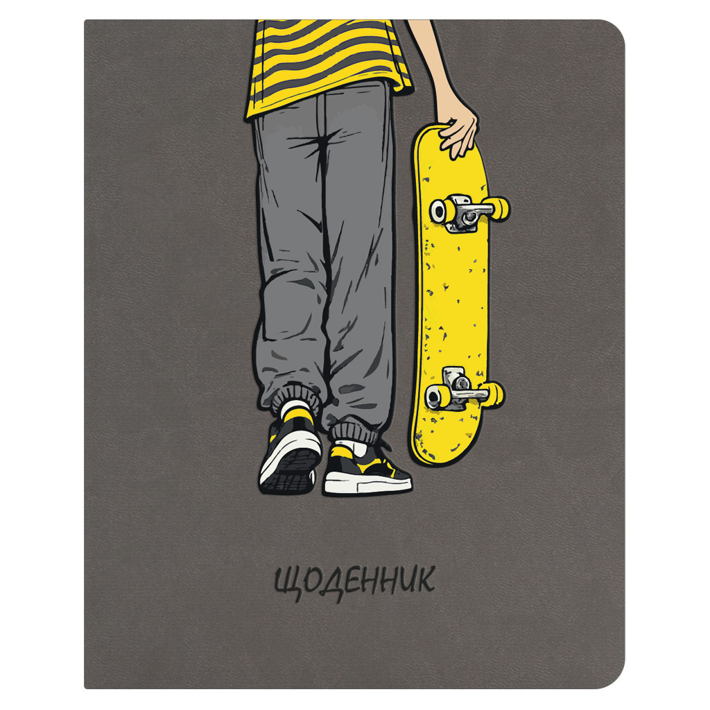 Щоденник шкільний А5 (160х198), 42 акуші. Обкладинка: покривка штучна шкіра, сторонки картон картон хром-ерзац. Блок офсетний папір 80г/м2. Структура внутрішнього блоку: -загальні відомості про учня, -відомості про вчителів, -розклад уроків по семестрах на рік. -основній блок - розклад на тиждень на розвороті (8 уроків, 6 днів тижня), -табель успішності учня.