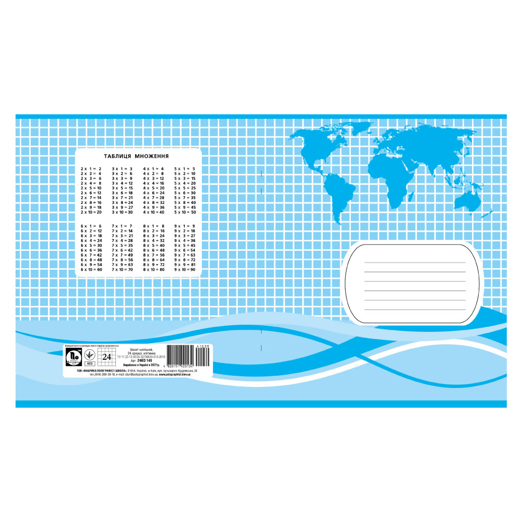 Опис Зошит учнівський 24 арк., клітинка, обкладинка двоколірна Серія 149