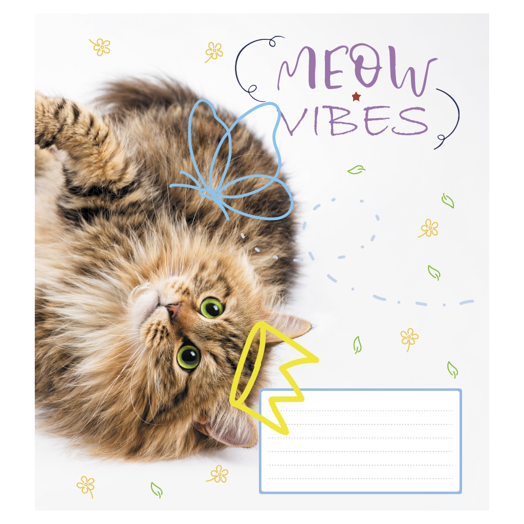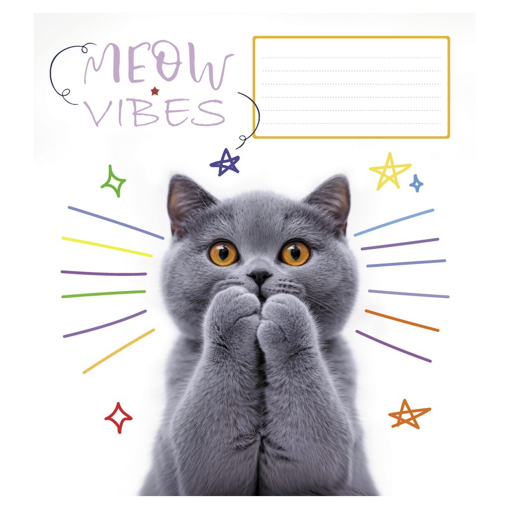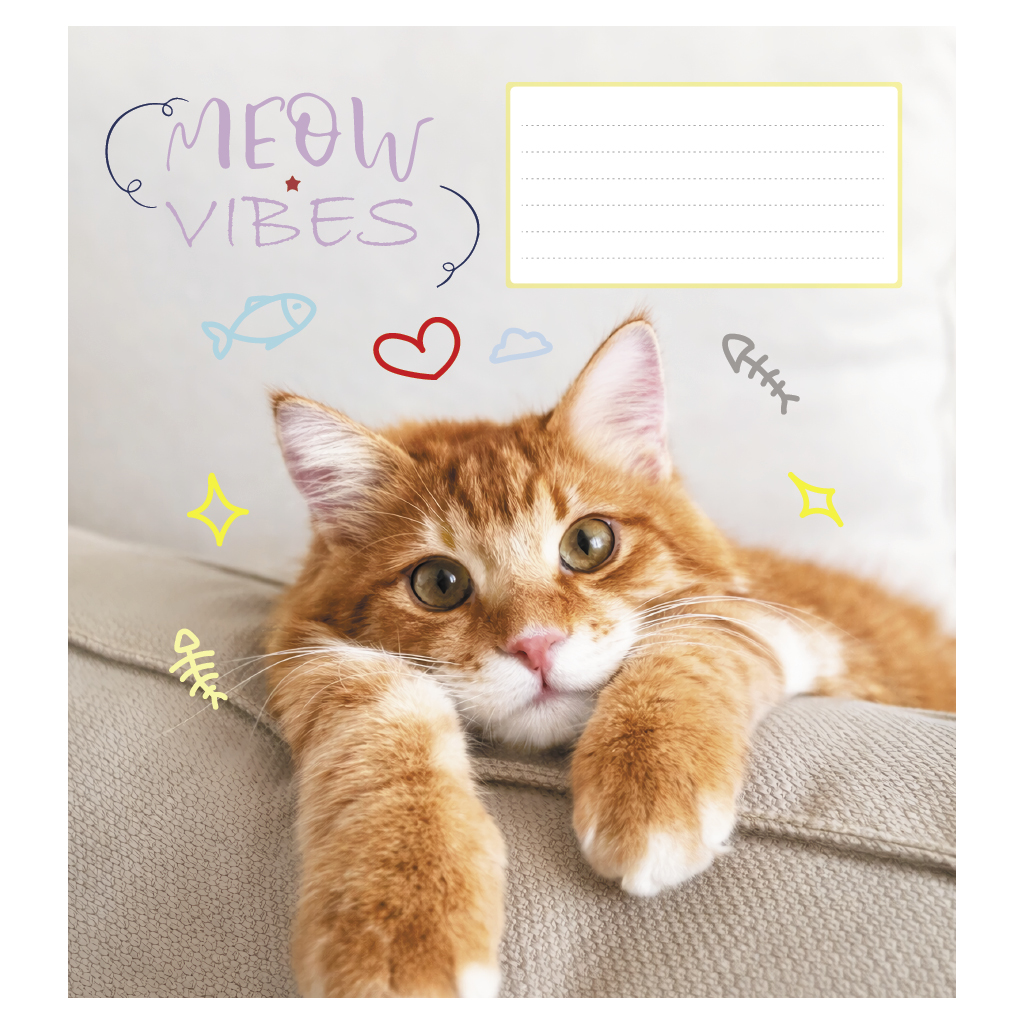 Опис Зошит учнівський повноколірний 12 арк., клітинка. Серія 233"Настрій Мяу"