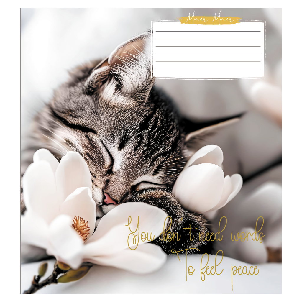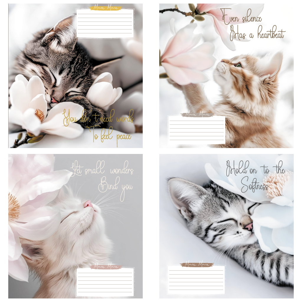 Опис Зошит учнівський повноколірний 12 арк., коса лінія. Серія 230"Котики з квітами"