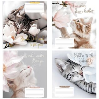 Опис Зошит учнівський повноколірний 12 арк., лінія. Серія 230"Котики з квітами"