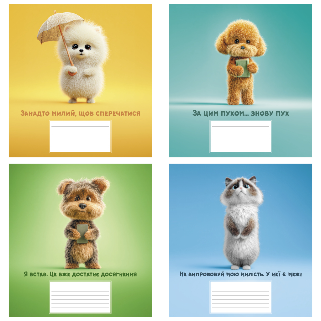 Опис Зошит учнівський повноколірний 18 арк., клітинка. Серія 207"Котики та собачки"