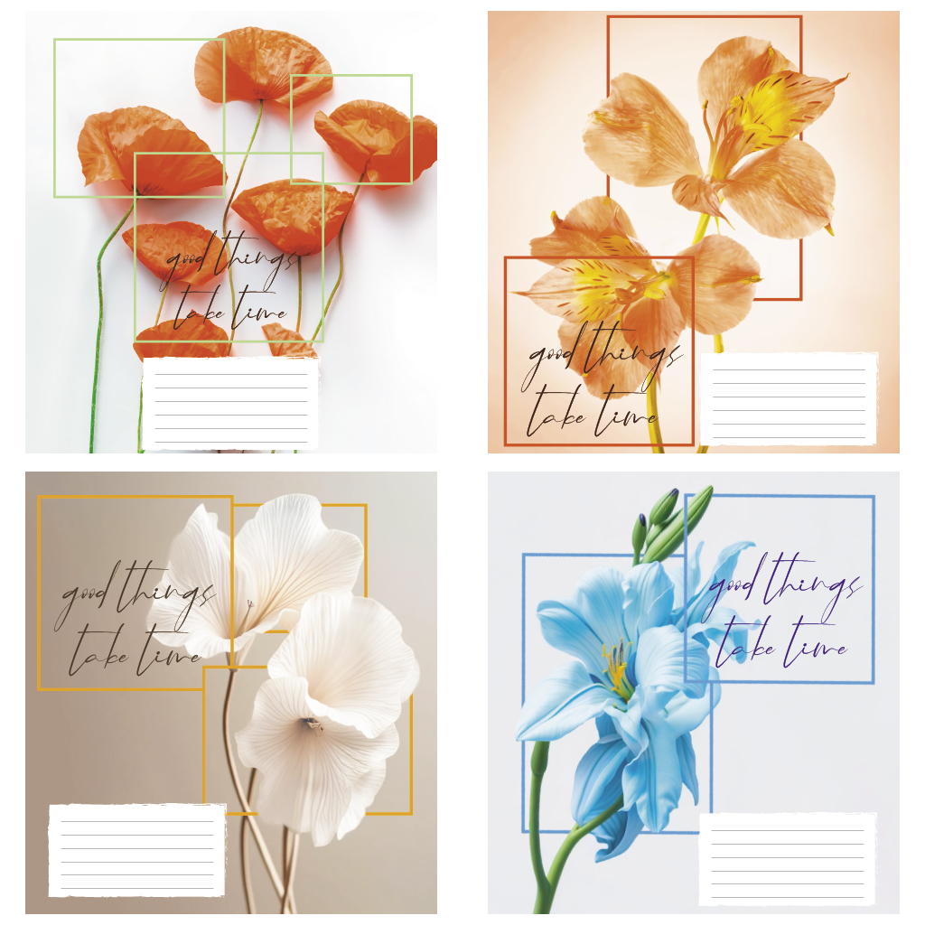 Опис Зошит учнівський повноколірний 18 арк., лінія. Серія 263"Ніжні квіти"