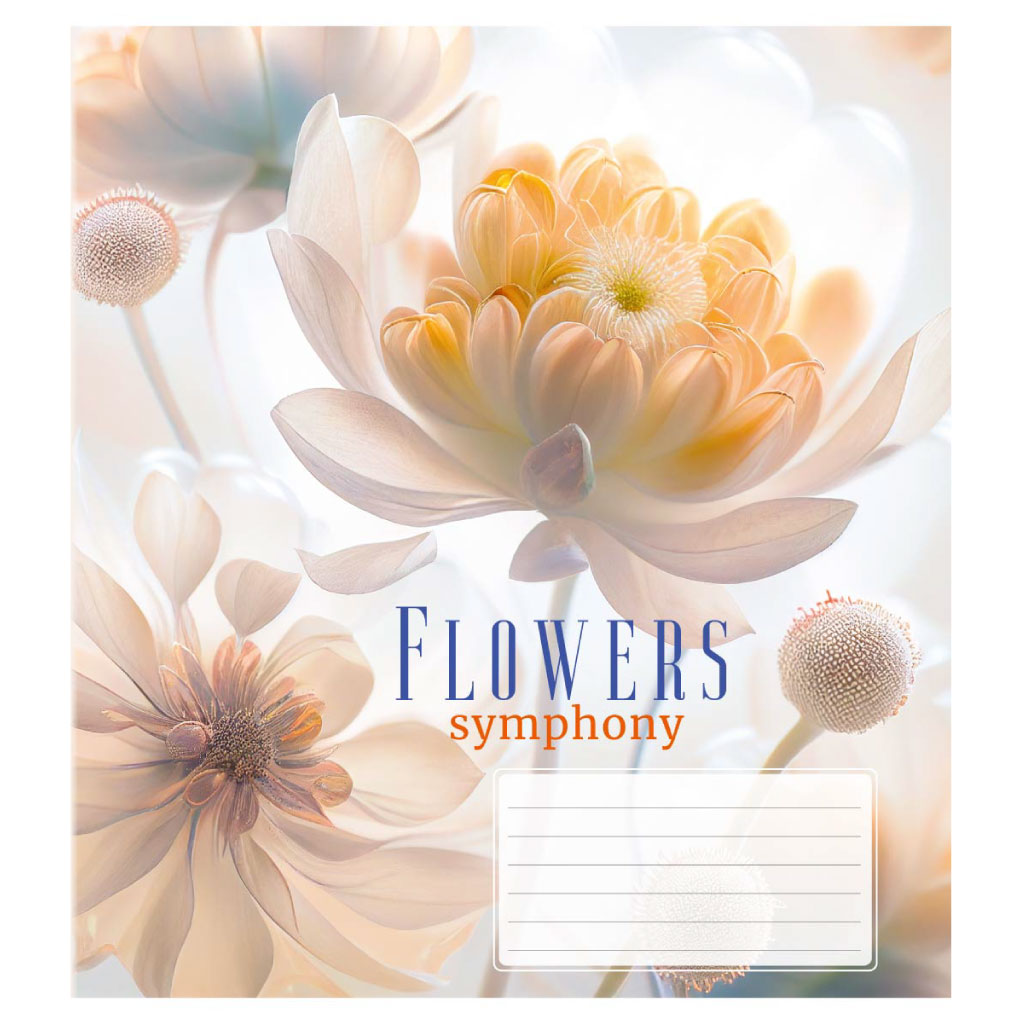 Опис Зошит учнівський 24 арк., клітинка, обкладинка повноколірна Серія 160"Квіткова симфонія"