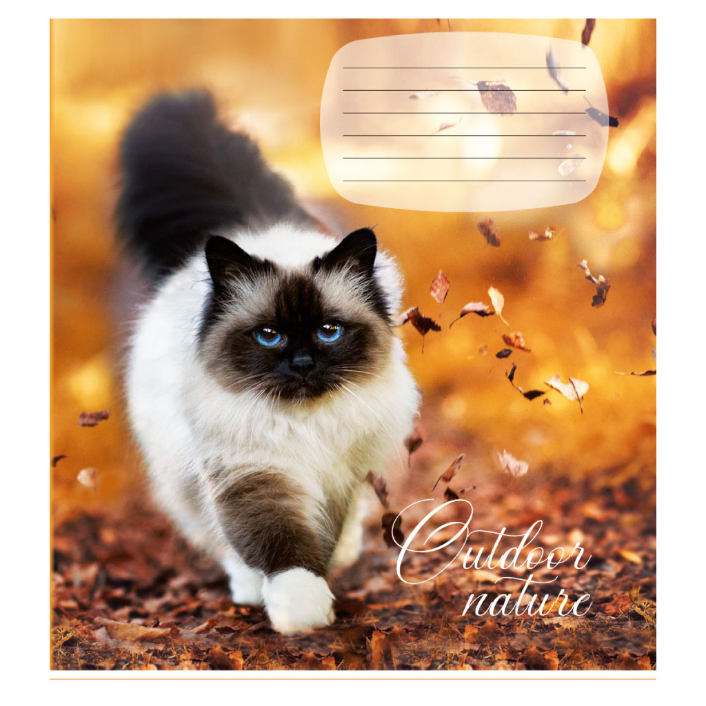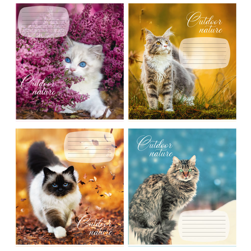 Опис Зошит учнівський 24 арк., лінія, обкладинка повноколірна Серія 969"Коти на природі"