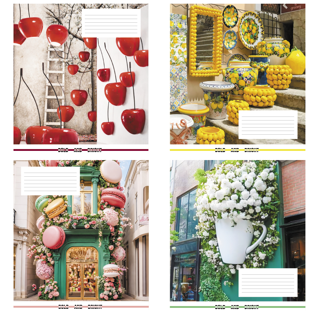 Опис Зошит учнівський повноколірний загальний 36 арк., клітинка. Серія 270"Яскраві вулиці"