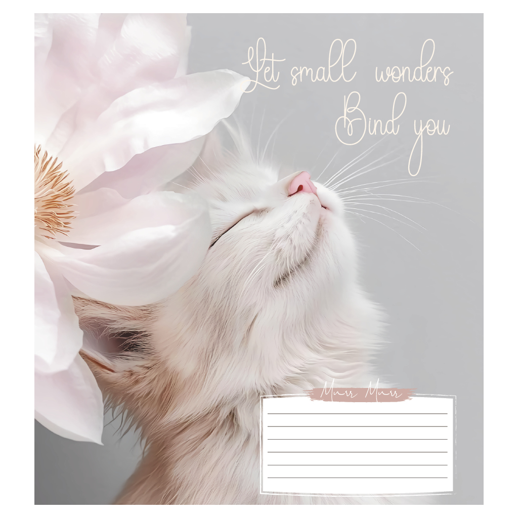 Опис Зошит учнівський повноколірний загальний 48 арк., клітинка. Серія 230"Котики з квітами"
