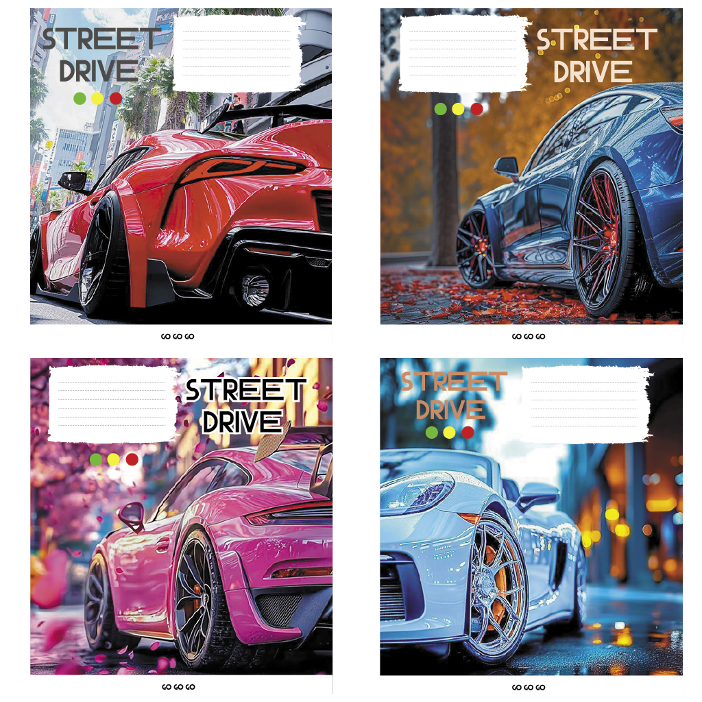 Опис Зошит учнівський повноколірний загальний 60 арк., клітинка. Серія 281"Вулична їзда"