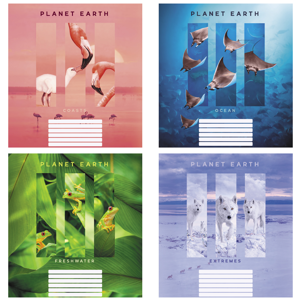Опис Зошит учнівський повноколірний загальний 96 арк., клітинка. Серія 221"Планета Земля"