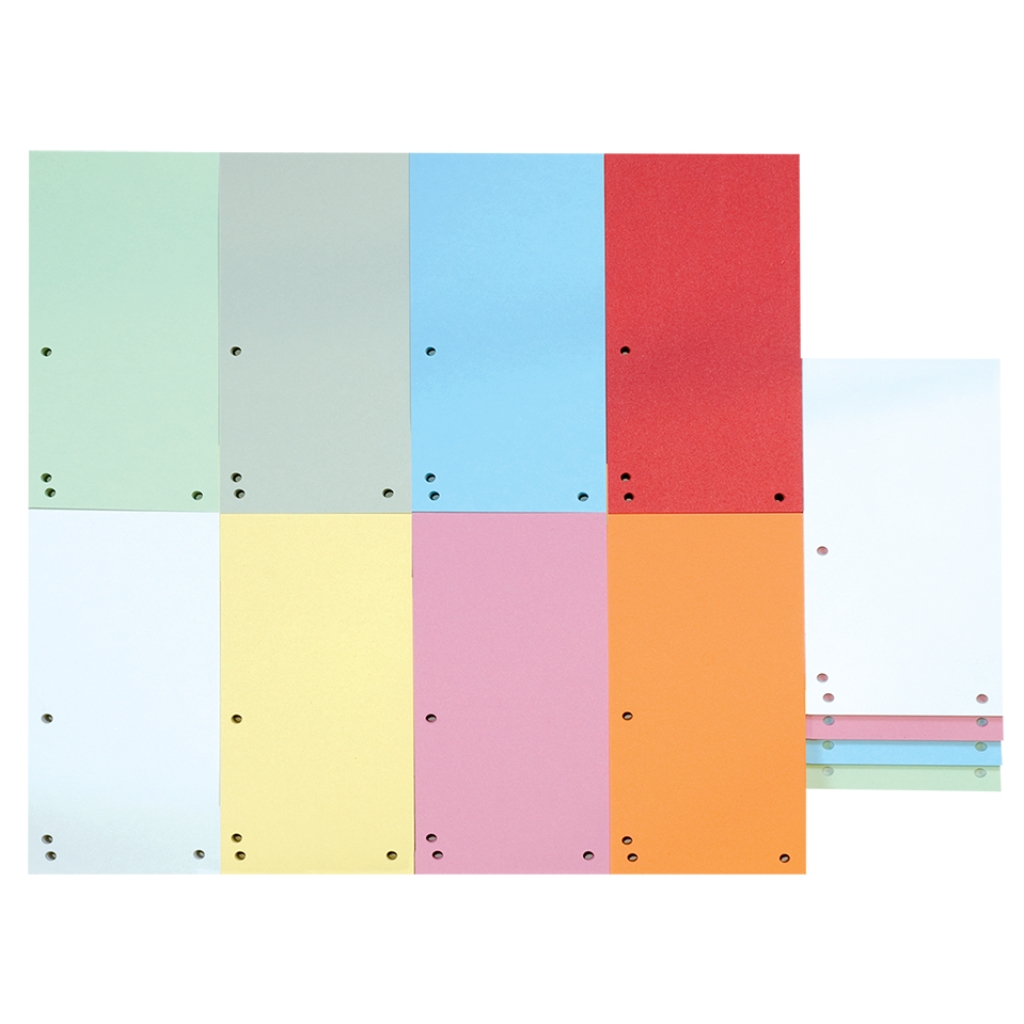 Індекс-розділювач для систематизації та впорядкування документів в реєстраторах та швидкозшивачах.4 отвори: для використання в горизонтальному або вертикальному положенніМатеріал: картон щільністю 190 г/м?Розмір: 105x230 ммКолір: асортіВ упаковці 100 аркушів
