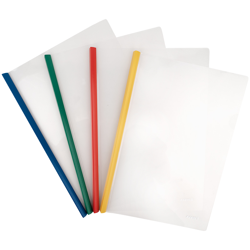 Швидкозшивач з планкою - чудове рішення для систематизації, архівації та презентації документів. Завдяки планці швидкозшивач не псує зовнішній вигляд документів, не вимагає допоміжних матеріалів та інструментів (файли, діркопробивачі, біндери і т.д.). Швидкозшивач з планкою Axent виготовлений з первинного поліпропілену, щільність пластику передбачає зносостійкість і збереження презентабельного вигляду в процесі використання. Місткість: до 65 аркушів. Різні кольори планок сприяють систематизації документів.