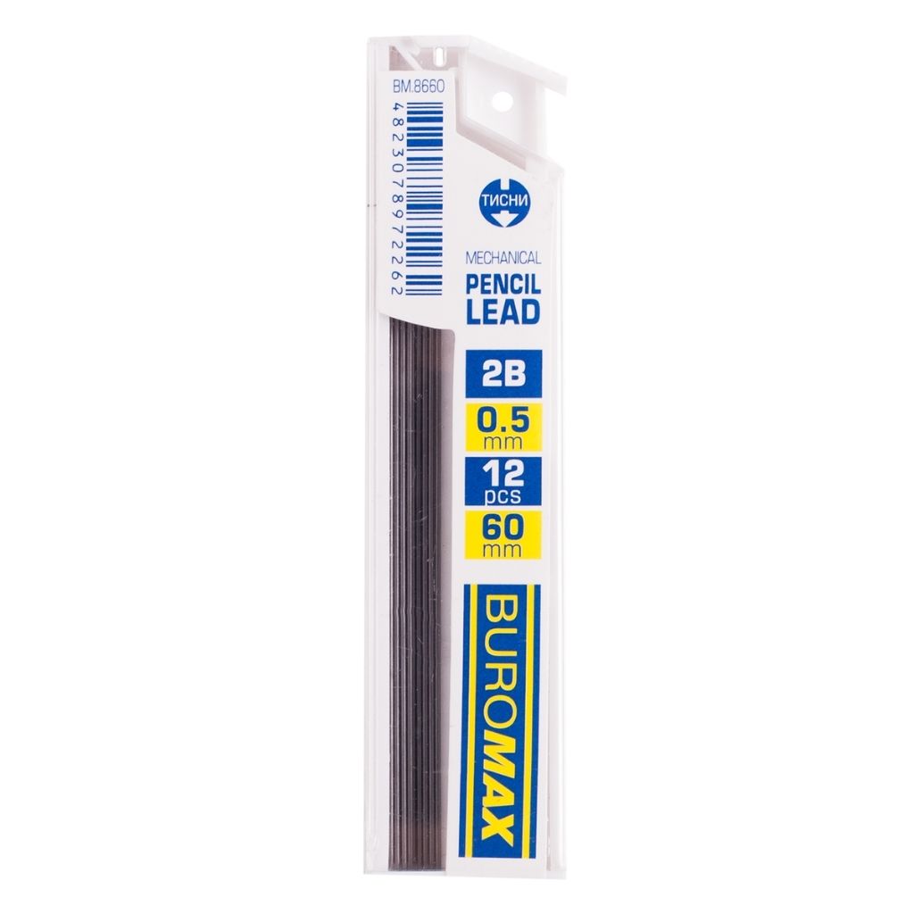 Високоякісний грифель для механічних олівців BUROMAX ідеально підходить для механічних олівців BUROMAX (*звертайте увагу, щоб діаметр грифеля олівця відповідав діаметру стрижня). Покращений пластиковий контейнер дозволяє зручно зберігати, транспортувати та замінювати стрижні. Твердість 2B.Діаметр стрижня 0,5 мм.Довжина стрижня 60 мм.Грифель упакований у зручний пластиковий контейнер. 12 пластикових контейнерів упаковані в картонну коробку.