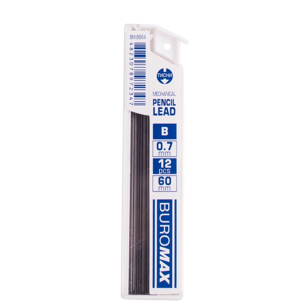 ЗавантажитиВисокоякісний грифель для механічних олівців BUROMAX ідеально підходить для механічних олівців BUROMAX (*звертайте увагу, щоб діаметр грифеля олівця відповідав діаметру стрижня). Покращений пластиковий контейнер дозволяє зручно зберігати, транспортувати та замінювати стрижні. Твердість B.Діаметр стрижня 0,7 мм.Довжина стрижня 60 мм.Грифель упакований у зручний пластиковий контейнер. 12 пластикових контейнерів упаковані в картонну коробку.