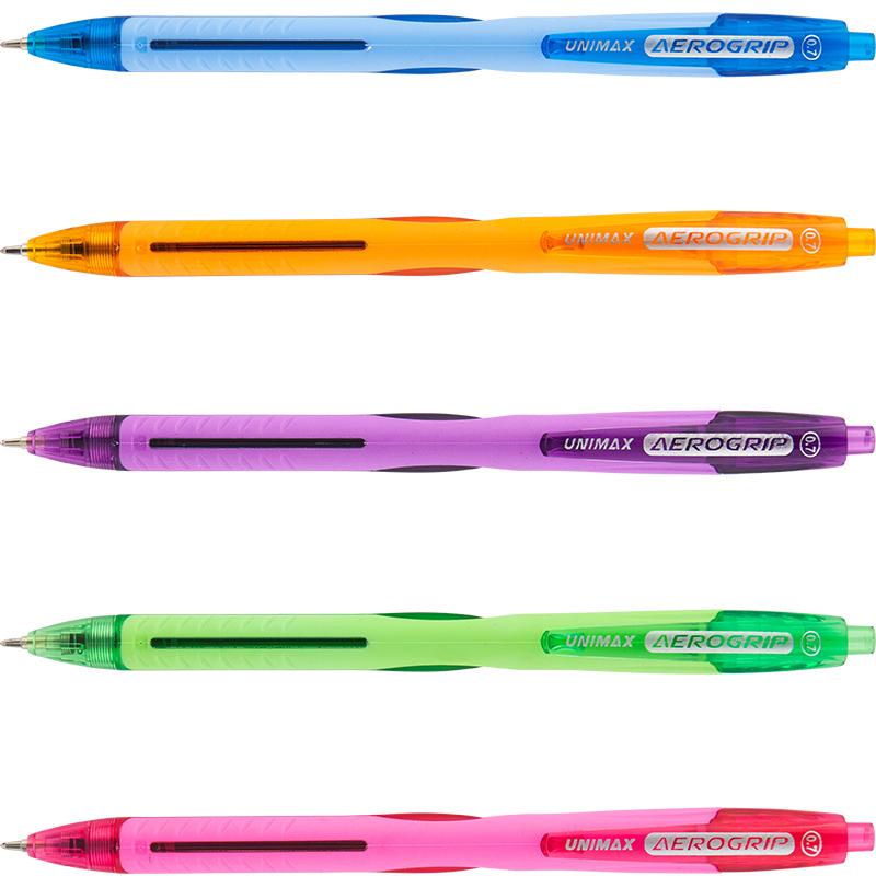 Ручка кулькова автоматична з непрозорим прогумованим пластиковим корпусом різних кольорів, напівпрозорими вставками і пластиковим кліпом. Чорнило підвищеної в'язкості забезпечує суперм'яке письмо. Пишучий вузол 0,7 мм. Колір чорнила: синій. Стержень UXB-137. Довжина стержня 107 мм.