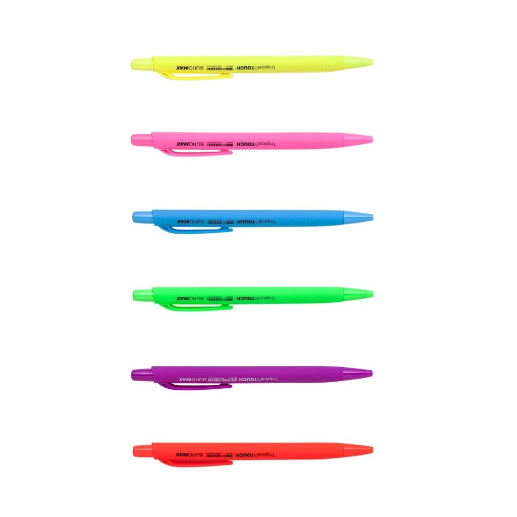 Ручка масляна автоматична TROPICAL TOUCH, серія RUBBER TOUCH ідеальне рішення для офісу, школи та будинку!чорнила зниженої в'язкості і щільності забезпечують м'яке, плавне і легке лист, не вимагаючи натиску на папір і залишаючи чітку лінію прекрасно переносять низькі температури (до -20), зберігаючи свої функціональні властивостішвидко висихають і не розмазуютьсямають помірний рівень витраттригранний корпус RTтовщина лінії письма 0.7ммзмінний стержень: BM.8385-01колір чорнила: синійколір корпусу: зелений, помаранчевий, блакитний, жовтий, рожевий, фіолетовий.упаковка: 36 шт, картонний шоубоксРучки BUROMAX - відмінний інструмент на кожен день!