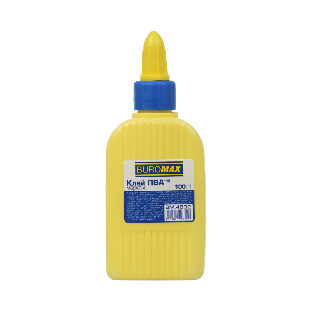 Клей ПВА BUROMAX - стане незамінним помічником у роботі. Підходить для щоденного використання в офісі, а також для творчості. Характеристики:об'єм - 100 млдля склеювання паперу, картону, фотографій, дерева, тканини, коркипластиковий флакон з дозатором, який викручуєтьсяковпачок-дозатор регулює подачу клею та запобігає висиханнюклей наноситься тонкою лінієюв горизонтальному положенні не витікаєзмивається водою BUROMAX - це якість і надійність!