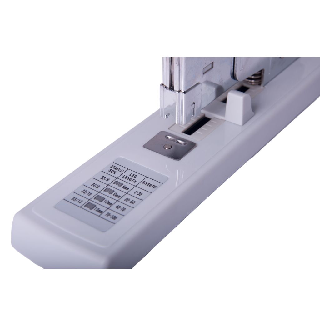 Степлер від BUROMAX посиленої потужності з продуманим дизайном стане незамінним атрибутом в роботі. Скріплює заявлену кількість аркушів (100 арк. паперу 80 г / м?) і навіть більше.Особливість степлера - пересувна лінійка, яка регулює глибину завантаження паперу і довідкова таблиця відповідності номера скоби і кількості аркушів, які скріплюються.Підошва виготовлена з металу з пластиковим важелем.Степлер підходить для щоденного використання як вдома, так і в офісі. Матеріал: метал/пластикПробивна потужність: 100 аркушівКольори: чорний, синій, сірийТип скріплення: закритийСкоба: №23/6, №23/8, №23/10, №23/13Глибина закладання паперу: 60 ммРозміри степлера: 280х64х160мм