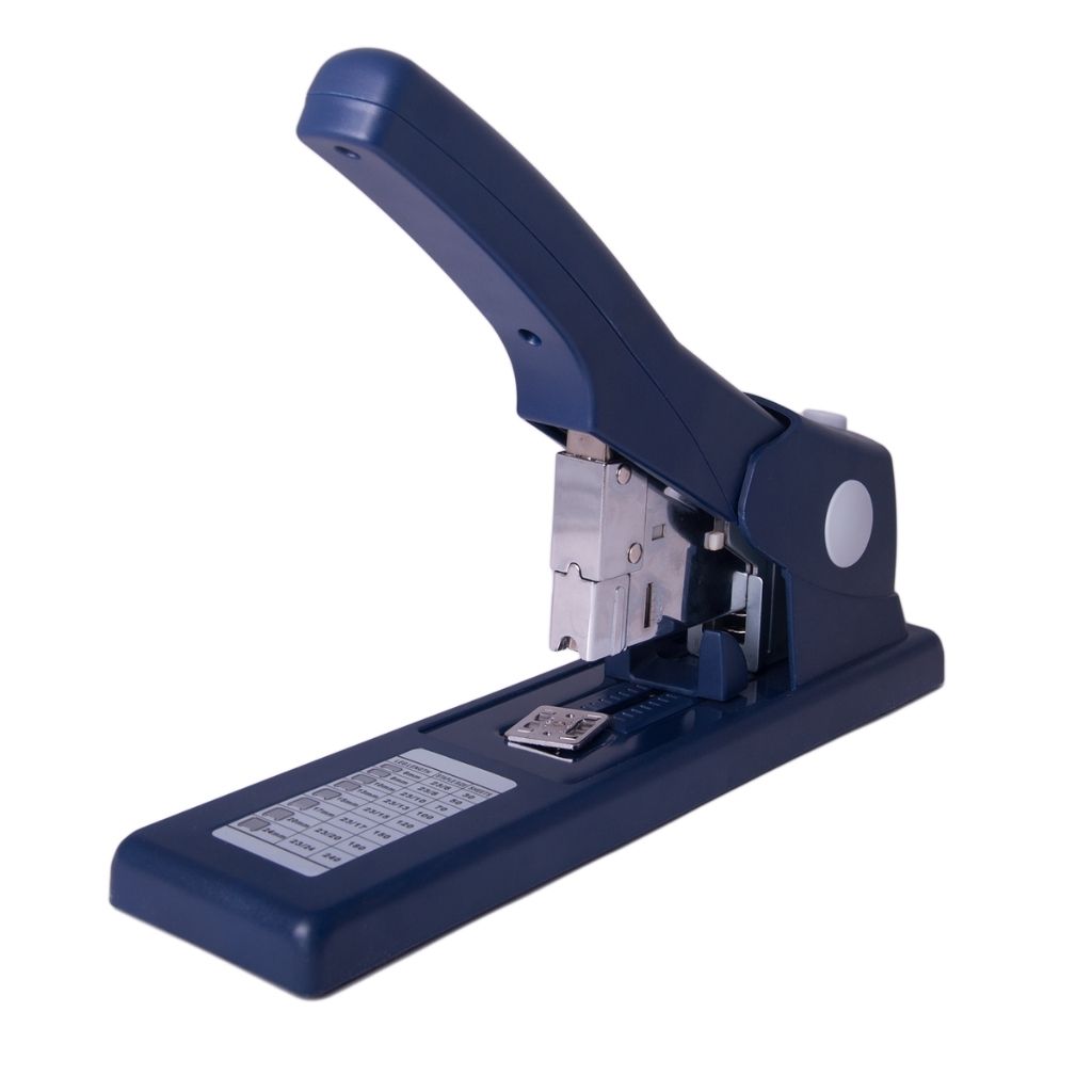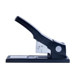 Степлер від BUROMAX посиленої потужності з продуманим дизайном стане незамінним атрибутом в роботі. Скріплює заявлену кількість аркушів (240 арк. паперу 80 г / м?) і навіть більше.Особливість степлера - пересувна лінійка, яка регулює глибину завантаження паперу, довідкова таблиця відповідності номера скоби і кількості аркушів, які скріплюються, а також автоматичний механізм подачі контейнера для завантаження скоб.Підошва виготовлена з металу з пластиковим важелем.Степлер підходить для щоденного використання як вдома, так і в офісі. Матеріал: метал/пластикПробивна потужність: 240 аркушівКольори: чорний, синій, сірийТип скріплення: закритийСкоба: №23/6, №23/8, №23/10, №23/13, №23/17, №23/24Глибина закладання паперу: 70 ммРозміри степлера: 342х87х255мм