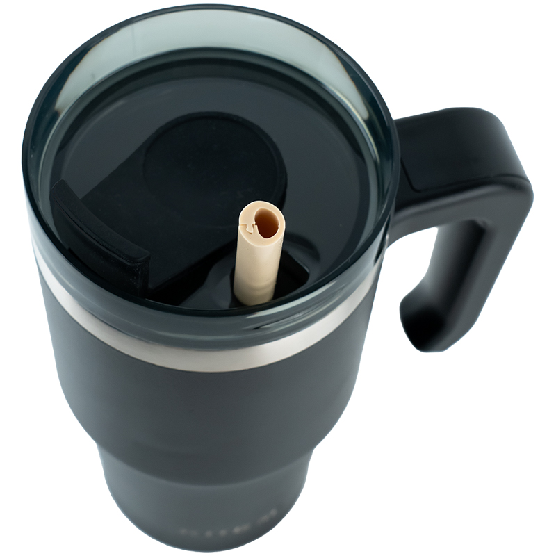 Ця модель має унікальну особливість – має в комплекті розбірну силіконову трубочку, яку зручно мити та просушувати після використання. З кружки можна пити як і через отвір, так і через трубочку. Стильна прозора кришка надійно герметично закривається.