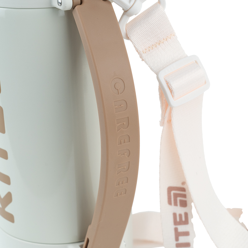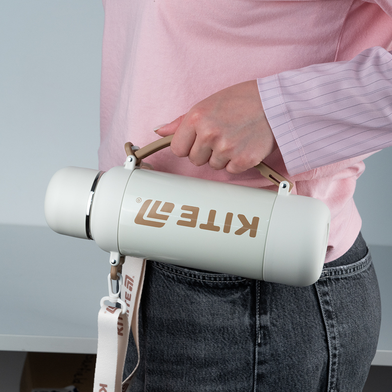 Прогумована ручка-переноска та знімний текстильний ремінець на карабінах забезпечують максимальний комфорт у дорозі. Носіть термос у руці або через плече — як вам зручно.
