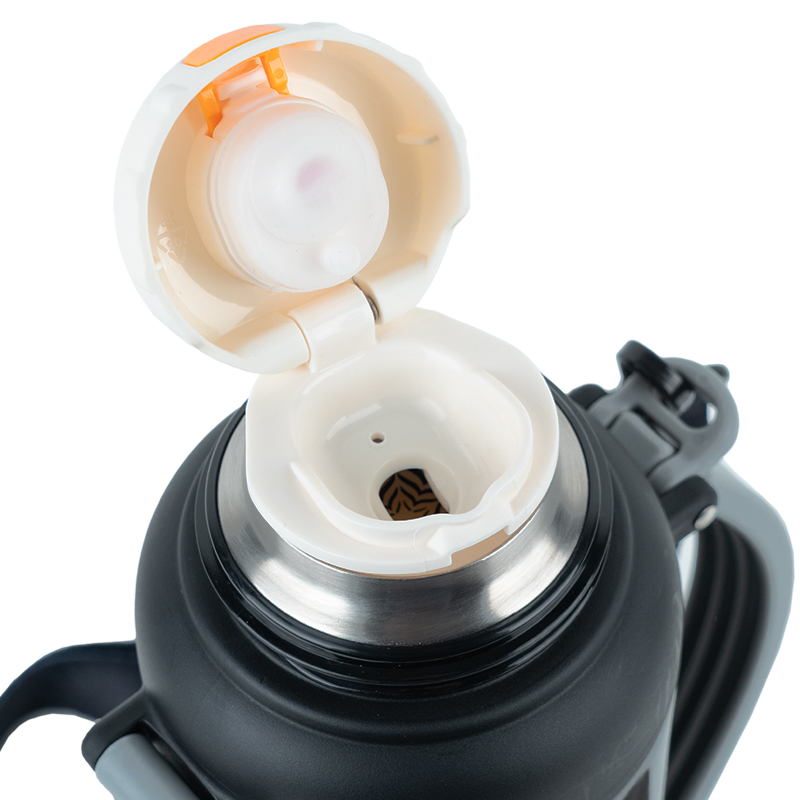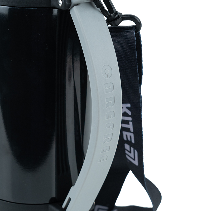 Прогумована ручка-переноска та знімний текстильний ремінець на карабінах забезпечують максимальний комфорт у дорозі. Носіть термос у руці або через плече — як вам зручно.