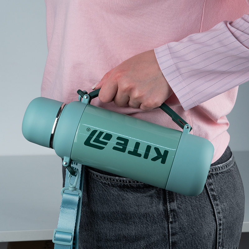 Прогумована ручка-переноска та знімний текстильний ремінець на карабінах забезпечують максимальний комфорт у дорозі. Носіть термос у руці або через плече — як вам зручно.
