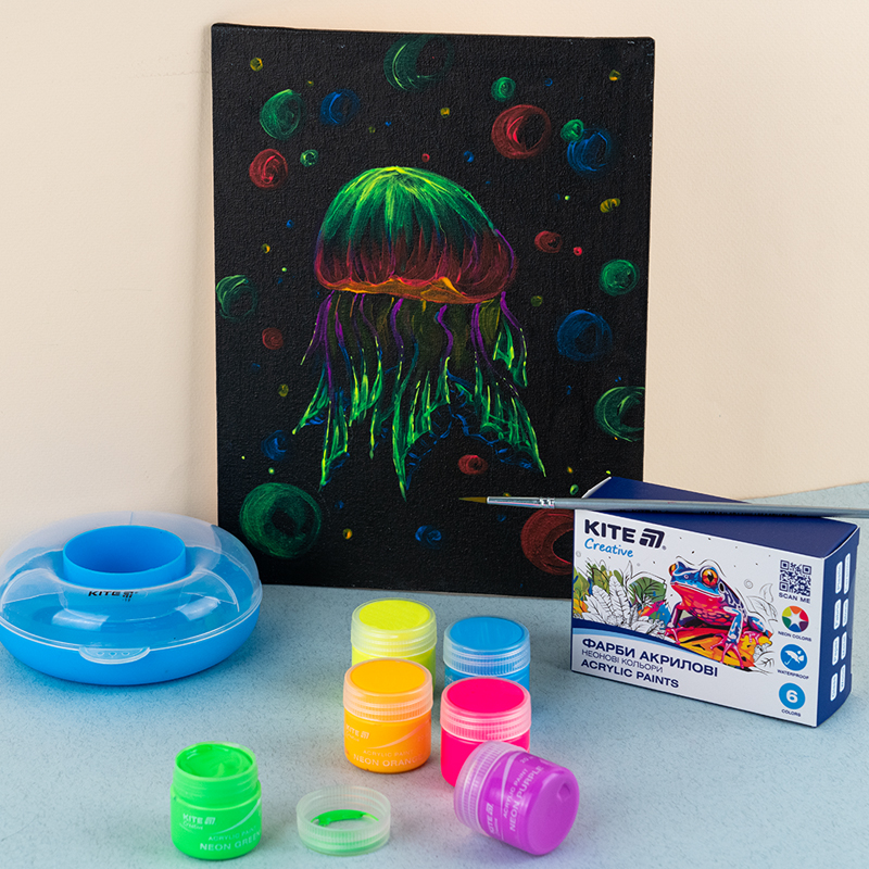 Неонові акрилові фарби Kite Creative K-274, 6 кольорів — для яскравої та сміливої творчості!