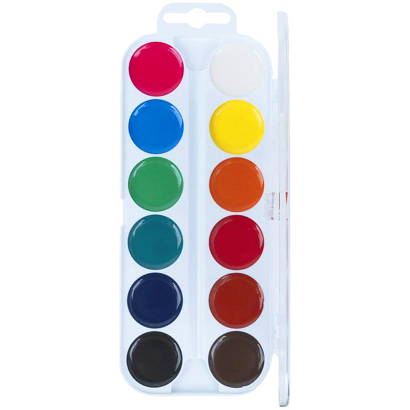 Яскрава палітра на 12 кольорів надихає створювати шедеври. Пластикова упаковка на клямці – компактна та зручна у використанні. Прозора кришка дозволяє розгледіти кольори.