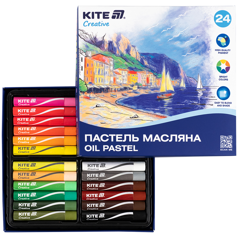 Масляна пастель Kite K-200-24 Creative, 24 кольори — потужний інструмент для тих, хто хоче розвивати свою майстерність і насолоджуватись процесом малювання. Вона поєднує високу якість із комфортом у користуванні, підходить для навчання, художніх студій, творчої діяльності та домашнього хобі.