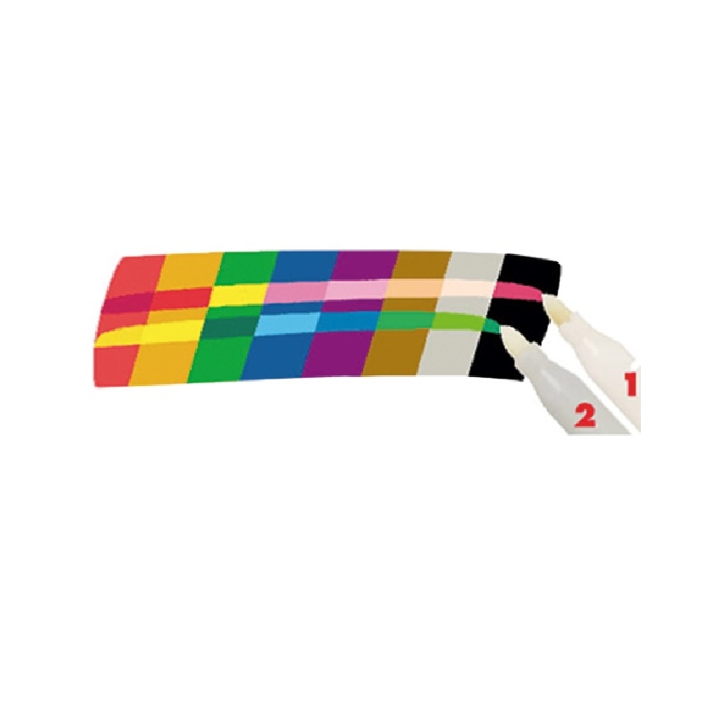 Фломастери з «магічним» чорнилом Duomagic. Чорнило змінює свій колір після промальовування поглиначами чорнила. Колір корпусу відповідає кольору чорнил, колір ковпачка - кольору після промальовування поглиначем №1, колір кришки корпусу - кольору після промальовування поглиначами чорнила №2. За допомогою 8 кольорів фломастерів і 2 поглиначів чорнила можна створити 24 кольори. Круглий пишучий вузол. Ширина сліду 2,5 мм. Пишучий вузол витримує велике навантаження без деформації. Вентильований ковпачок. Корпус з поліпропілену. Ергономічна форма зони захоплення зменшує напругу м'язів пальців. Не висихає без ковпачка протягом 10 днів. У наборі: 8 фломастерів і 2 види поглинача чорнила. Упаковка - пластиковий пенал з еврозавісом. Термін зберігання - 2 роки.