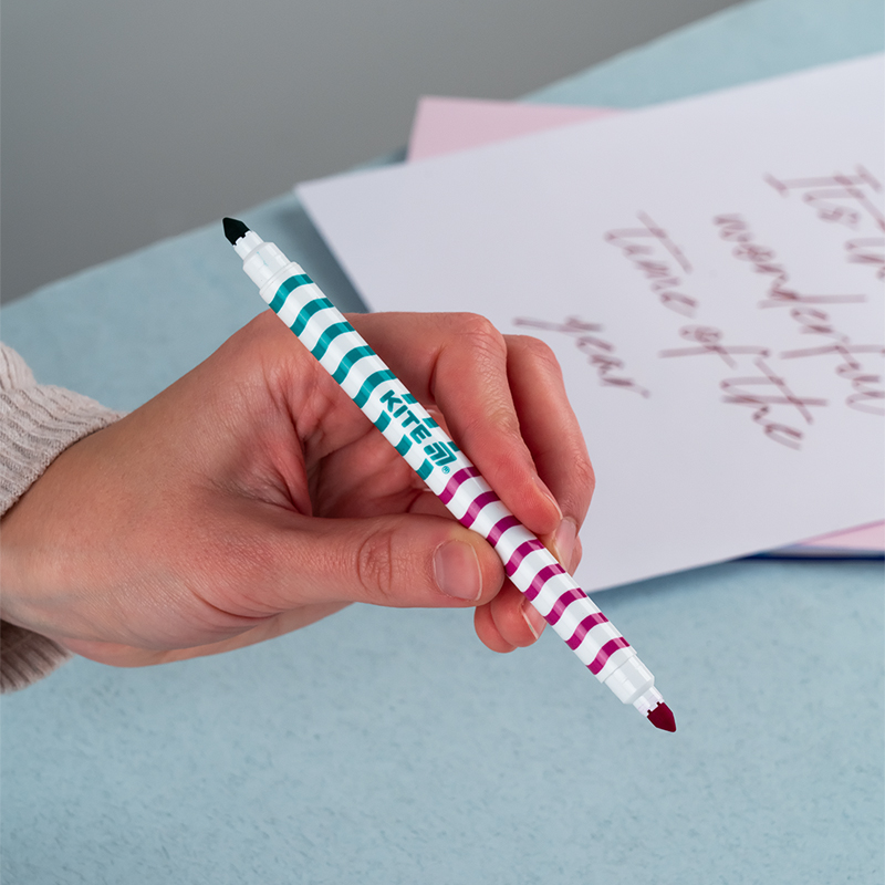Фломастери двосторонні :• двосторонні фломастери: 12 фломастерів, 24 відтінки,• конусоподібний пишучий вузол для тонких і широких ліній,• яскраві та насичені кольори,• якісні чорнила, безпечні для здоров’я,• компактна упаковка для зручного зберігання.
