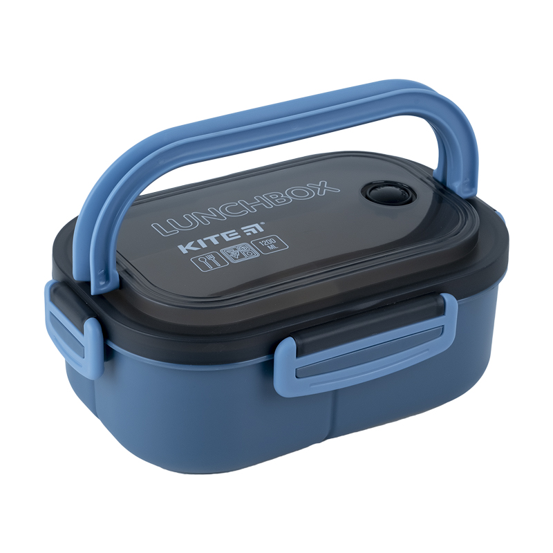 Ланчбокс Kite зроблений з харчового пластику. Бокс призначений для зберігання ланчу. Основа розділена на 3 відділення, має додатковий розділювач-тарілку, доповнений столовим приладдям. Він щільно закривається. Ланчбокс також можна використовувати як лоток для зберігання їжі в холодильнику. Об'єм 1200 мл.