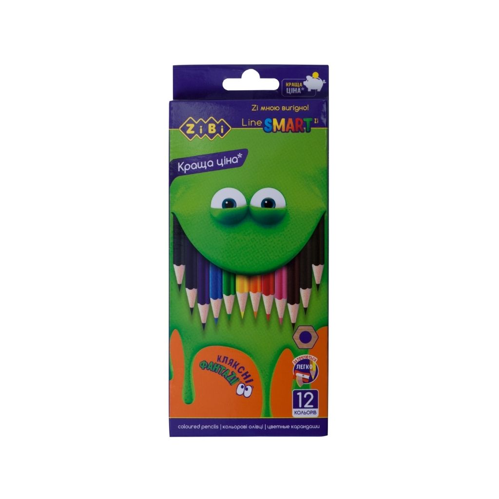 12 заточених кольорових олівців м'якістю B. Корпус олівців: шестигранний корпус з натуральної берези, довжина 178 мм, діаметр - 7 мм. Міцний грифель діаметром 2,6 мм, легко заточується, не кришиться і не ламаючись при малюванні і заточке.Упаковка - картонна коробка з европодвесом.