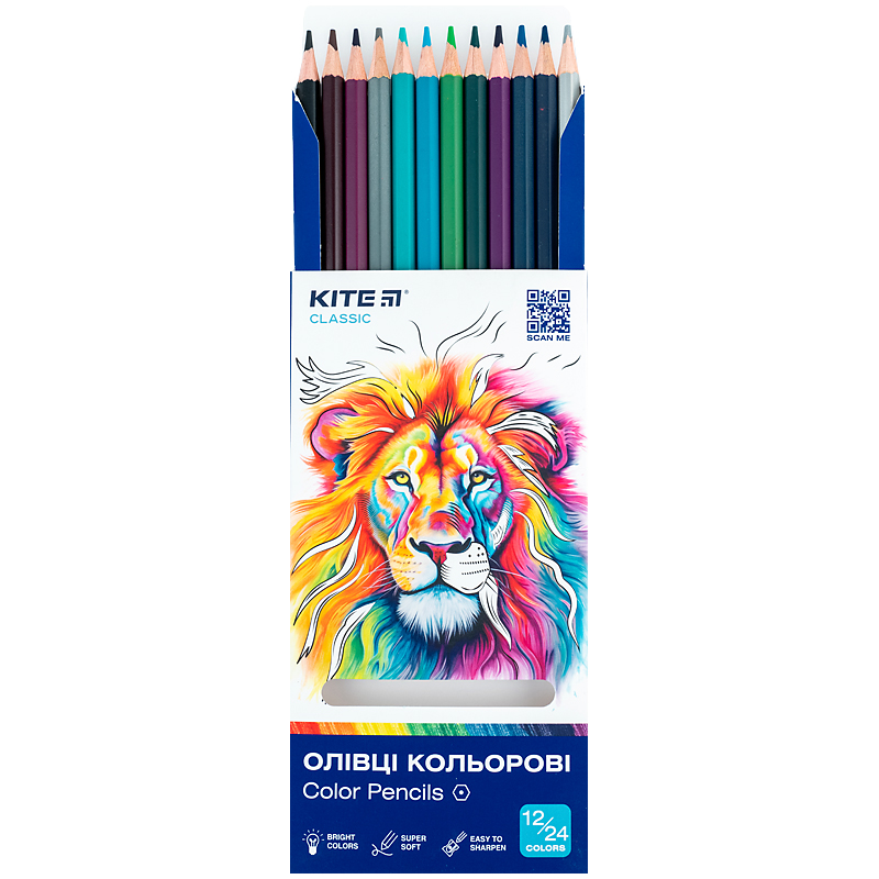 - двосторонній формат – 12 олівців та 24 соковитих кольорів,