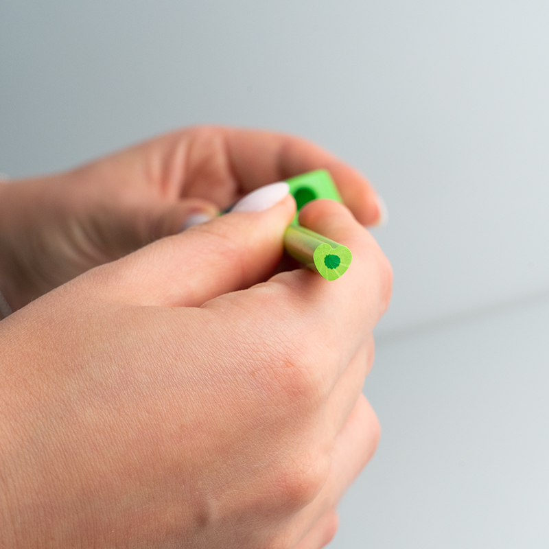 Корпус з якісного пластика дуже легко та плавно заточується. Унікальна форма корпусу зацікавлює дітлахів, а грифель створює насичену лінію та не дряпає папір.