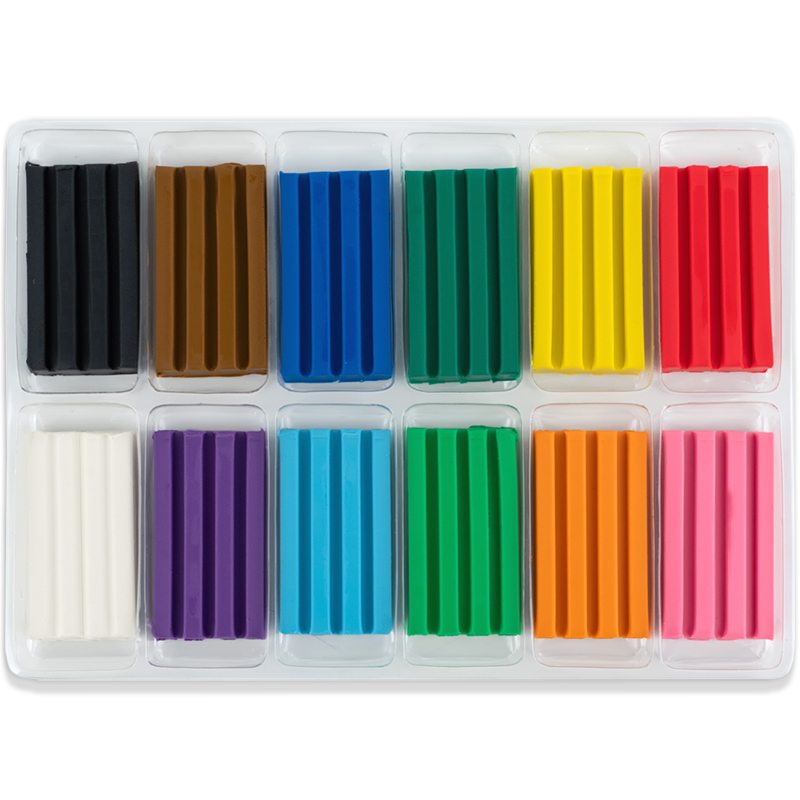 - багата палітра – 12 різнокольорових брусків для створення яскравих виробів,