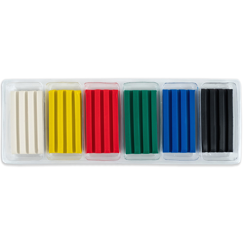 - яскрава палітра – 6 різнокольорових брусків для створення ефектних виробів,